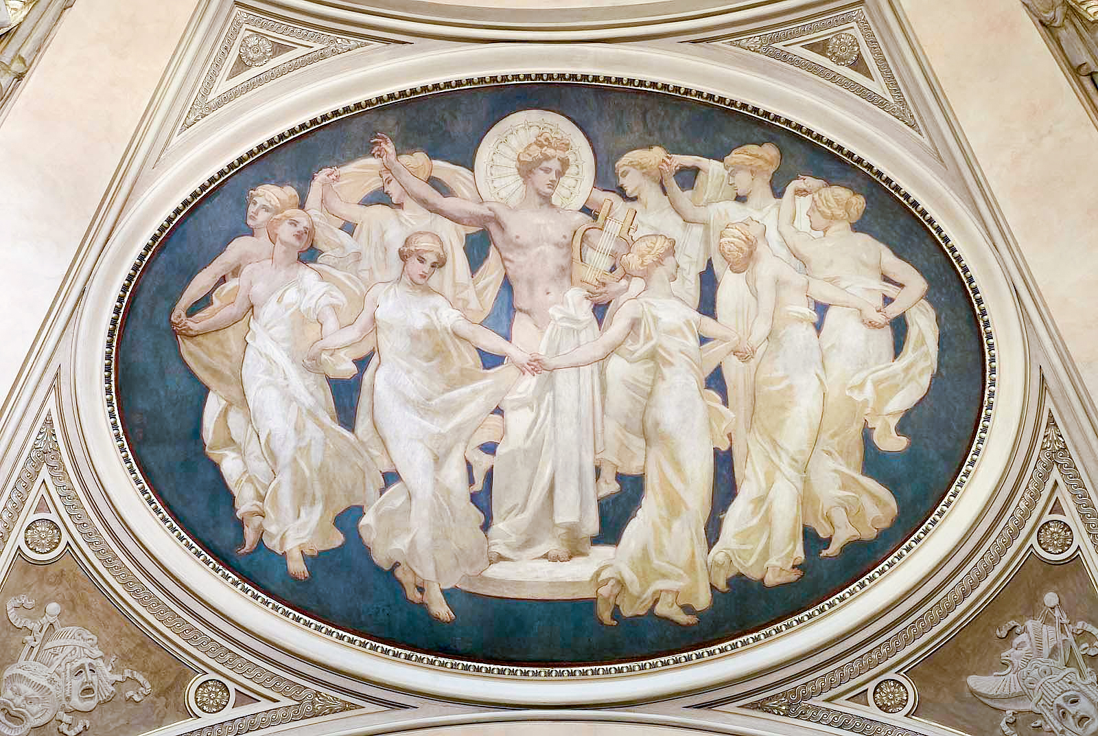 Ὁ θεὸς Ἀπόλλων περιστοιχιζόμενος ἀπὸ τὶς ἐννέα Μοῦσες. Τοιχογραφία τοῦ ζωγράφου Τζὸν Σίνγκερ Σάρτζεντ.