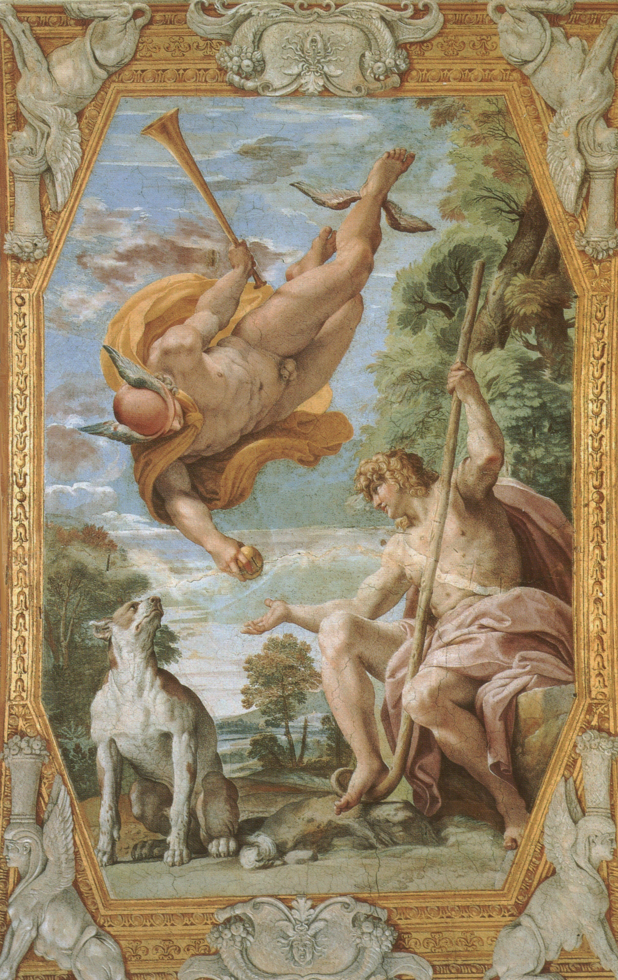 Ὁ θεὸς Ἑρμῆς καὶ ὁ Πάρις τῆς Τροίας. Πίνακας τοῦ ζωγράφου Ἀννιμπάλε Καρράτσι (Annibale Carracci), ἀπὸ τὴν σειρὰ “Θεῶν Ἔρωτες”, Γκαλλερὶ Φαρνέζε, Ρώμη.