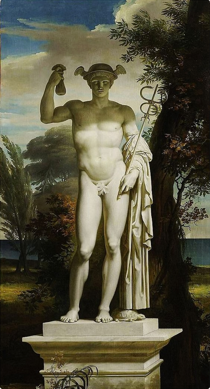 Ἄγαλμα τοῦ θεοῦ Ἑρμοῦ σὲ τοπίο. Πίνακας τοῦ ζωγράφου Σάρλ Μεϋνιέρ (Charles Meynier).