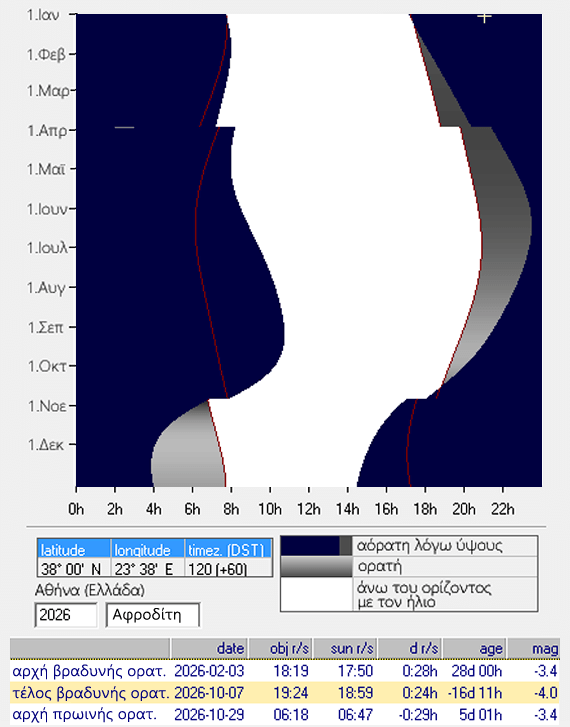 14.11.26 β′ στηριγμός: 27° 34′ Παρθένου. Ἡ Ἀφροδίτη γίνεται πάλι ὀρθόδρομος. Τελειώνει ἡ φαινόμενη ἀνάδρομος κίνηση τῆς Ἀφροδίτης, ποὺ εἶχε ξεκινήσει 3 Ὀκτωβρίου.