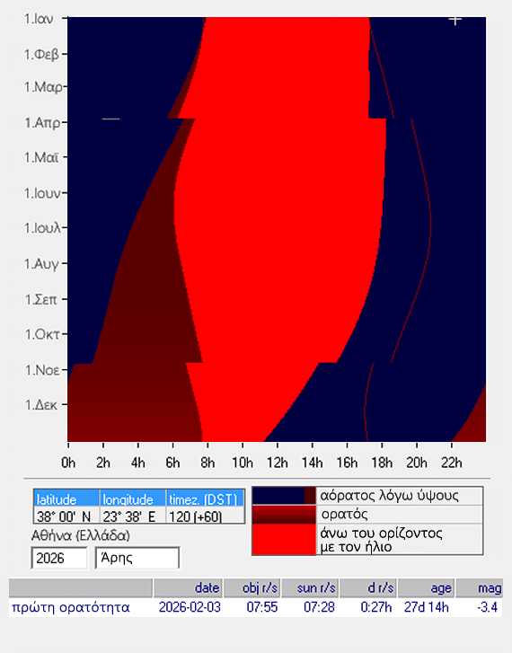 19.11.26 Ὁ πλανήτης Ἄρης σχηματίζει τετράγωνο μὲ τὸν Ἥλιο, δυτικό. Σὲ αὐτὴ τὴν θέση φθάνει τὴν ἀμφίκυρτη φάση του.