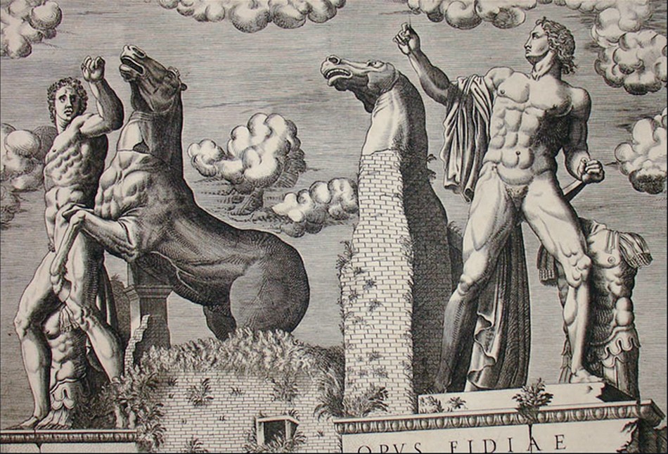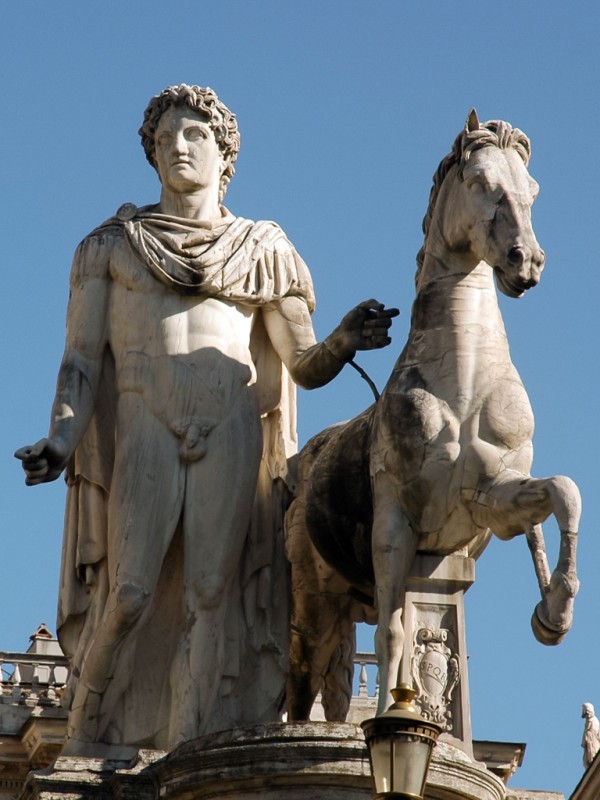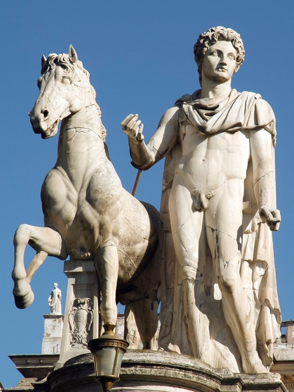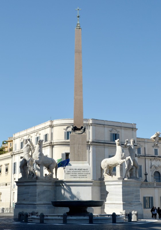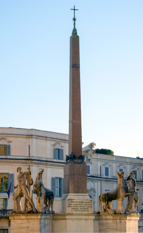 Τὰ ἀγάλματα τῶν Διοσκούρων καὶ τὸ ἀναβρυτήριον (ποὺ ἀντικατέστησε τὴν παλαιὰ πηγὴ τῶν Διοσκούρων) σήμερα, στὴν Πλατεία Κυριναλίου (Piazza del Quirinale) τῆς Ρώμης. Ὁ Ὀβελίσκος, εἷς ἐκ τῶν πέντε Ρωμαϊκῶν ὀβελίσκων καὶ πανομοιότυπος μὲ τὸν Ὀβελίσκο Esquiline, εἶχε κατασκευασθεῖ ἀπὸ ἐρυθρὸ γρανίτη τῆς Συήνης (Aswan, Αἴγυπτος) καὶ προέρχεται ἀπὸ τὸ Μαυσωλεῖο τοῦ Αὐγούστου. Ὁ Πάπας Πίος VI, τὸ 1786, ἔθεσε τὸν Ὀβελίσκο μεταξὺ τῶν ἀγαλμάτων, μετατοπίζοντας αὐτὰ ἐλαφρῶς. Παλαιότερα, ὁ Πάπας Σέξτος V εἶχε προβεῖ εἰς ἐργασίες συντηρήσεως καὶ ἀναστηλώσεως τῶν ἀγαλμάτων. Ἀπὸ τὴν ἐποχή του ἕως καὶ ἑνάμισυ αἰῶνα πρίν, οἱ Πάπες ἐσυνήθιζαν νὰ διαμένουν εἰς τὸ μέγαρο τοῦ Κυριναλίου λόφου. Ἡ περιοχὴ ἦταν ἐπίσης γνωστὴ ὡς Monte Cavallo, λόγῳ τῶν ἀγαλμάτων τῶν Διοσκούρων ποὺ ἀπεικονίζονται νὰ δαμάζουν ἵππους. Ἡ προέλευση τῶν ἀγαλμάτων δὲν εἶναι βέβαιη. Πιστεύεται ὅτι ἐκοσμοῦσαν τὰ λουτρὰ τοῦ Αὐτοκράτορος Κωνσταντίνου (Palazzo Rospigliosi καὶ Palazzo della Consulta σήμερα) ἢ τὴν εἰσοδο τοῦ Σεραπείου ποὺ εἶχε ἀνεγείρει ὁ Αὐτοκράτωρ Καρακάλλας.