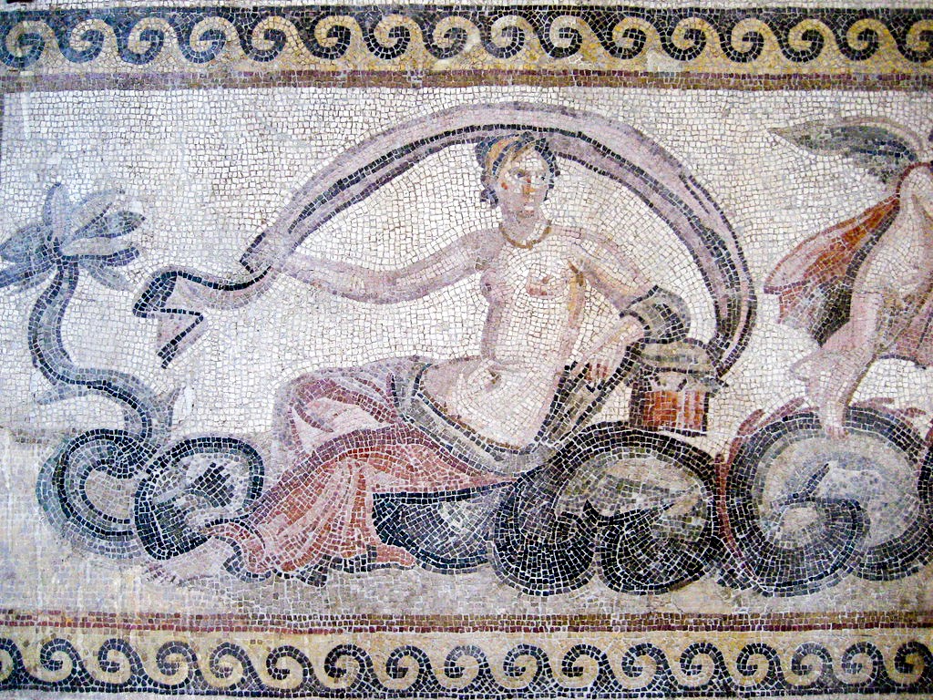 Ἡ Ἀφροδίτη καὶ ὁ Ἔρως, ἀπὸ τὸ ψηφιδωτὸ Ὠκεανοῦ καὶ Τηθύος, 3ος αἰ. μ.Χ., Οἴκία τῶν Ψυχῶν, Δάφνη (προάστιο) τῆς Ἀντιόχειας. Ἀρχαιολογικὸ Μουσεῖο Χατάϊ, Τουρκία.