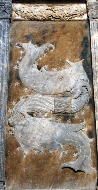 Οἱ Ἰχθεῖς, ἀνάγλυφο τοῦ Ἀγκοστῖνο ντὶ Ντούτσιο ἀπὸ τὸ παρεκκλήσι τοῦ Ζῳδιακοῦ (Cappella dello Zodiaco), 15ος αἰ., Ριμίνι, Ἱταλία.