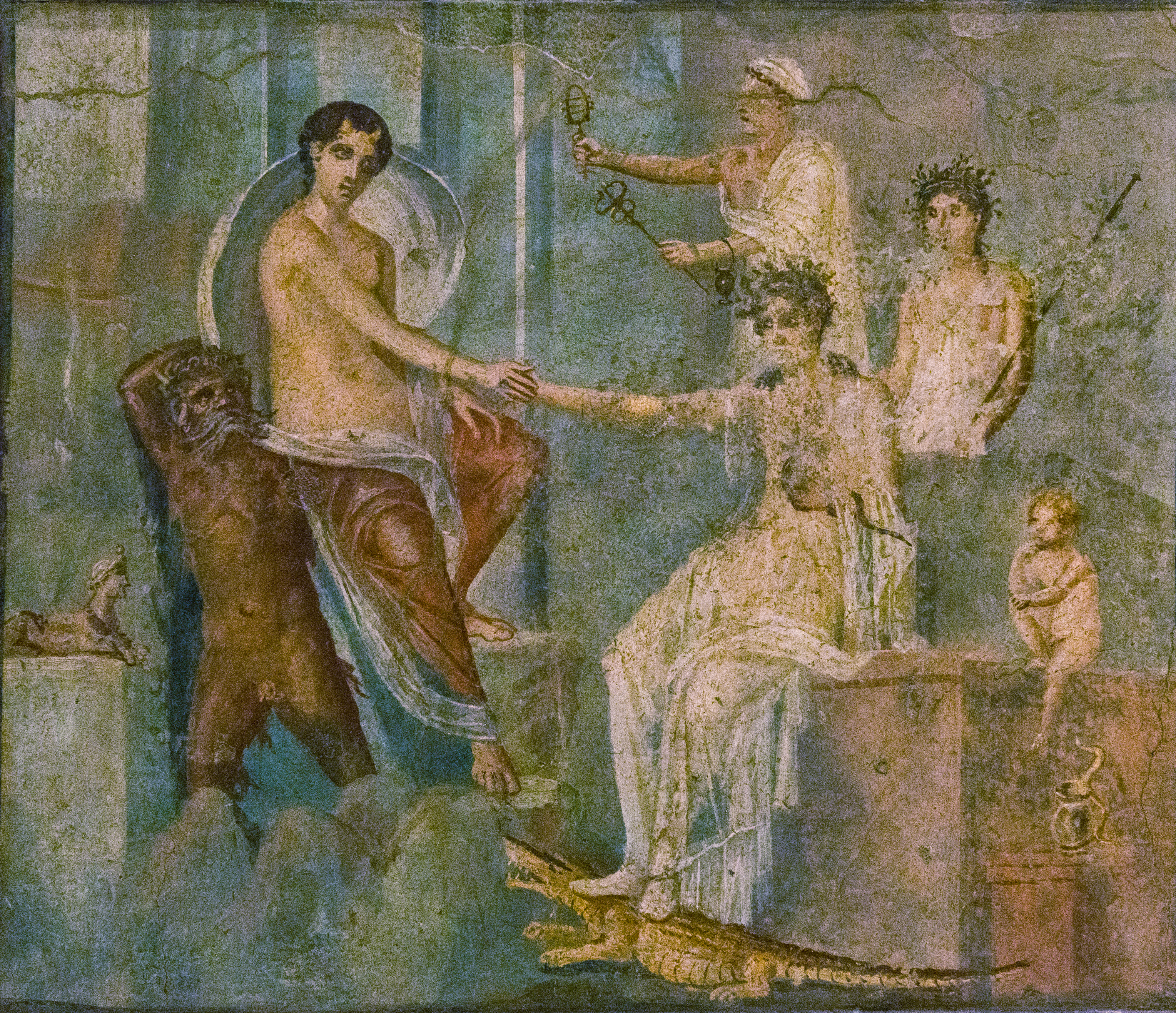 Ἡ Ἰὼ μεταφερόμενη ἀπὸ τὸν Νεῖλο φθάνει εἰς τὸν Κάνωβο, ἐγγὺς τῆς Ἀλεξάνδρειας, ἐνῶ ἡ θεὰ Ἶσις τὴν καλοσωρίζει, συνοδευόμενο ἀπὸ τὸν θεὸ Ἑρμῆ καὶ τὸν νεαρὸ Ἁρποκράτη. Τοιχογραφία, τέλη 1ου αἰ. π.Χ. – ἀρχὲς 1ου αἰ. μ.Χ. / τέλη 8ου αἰ. μ.Ὀ. – ἀρχὲς 9ου αἰ. μ.Ὀ., Πομπηία, Ἐθνικὸ Ἀρχαιολογικὸ Μουσεῖο Νεαπόλεως, Ἰταλία.